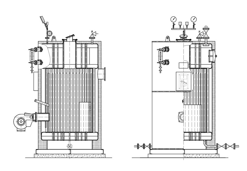 LSS型燃氣鍋爐為立式快裝內燃三(sān)回程火管鍋爐。